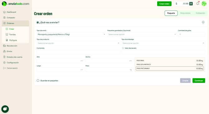 2. Ingresa la información de tu paquete