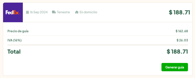Aparecerán los costos de todas las paqueterías que tengan cobertura. Puedes elegir la más conveniente para ti y tu cliente.
